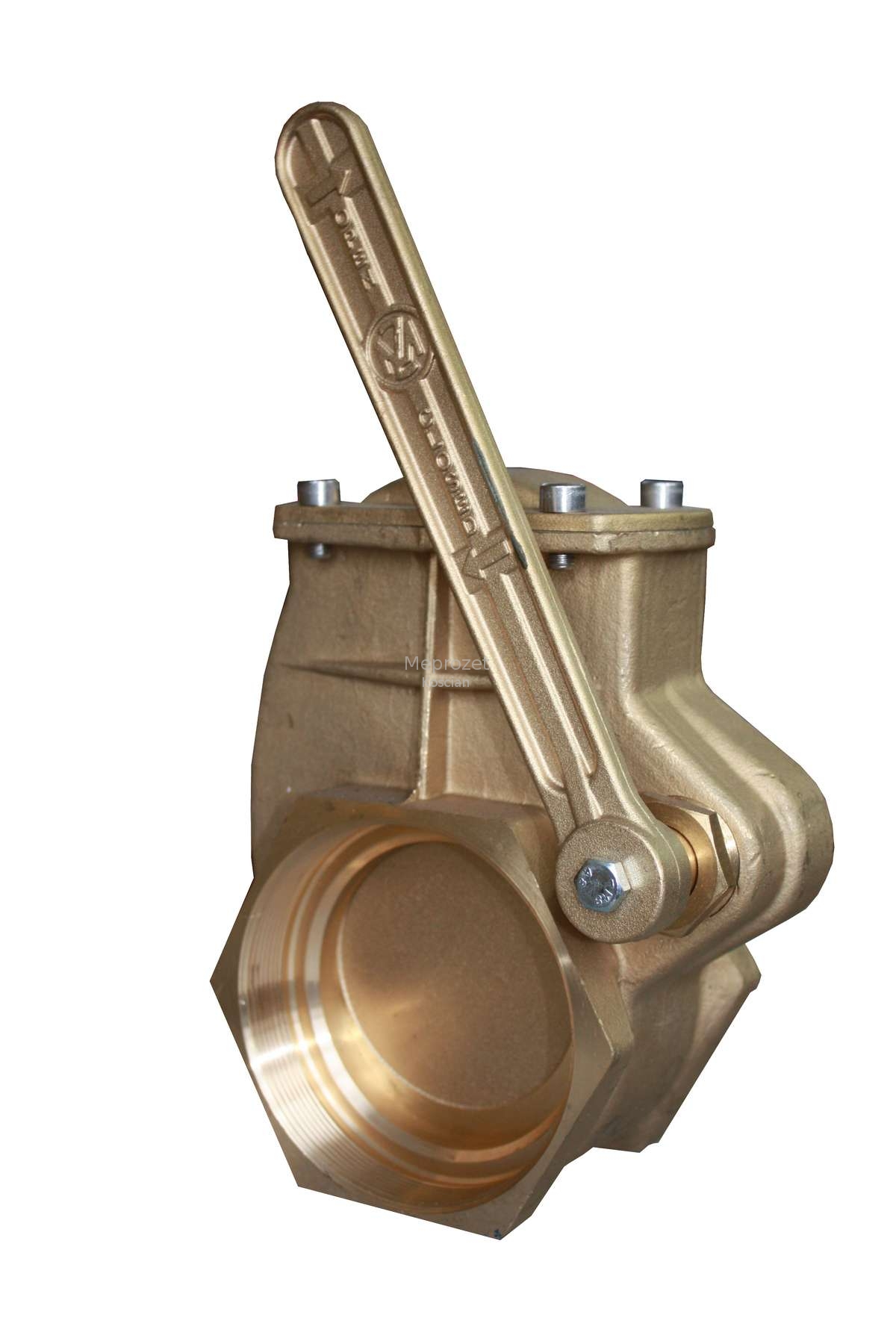mosiężna, otwierana ręcznie za pomocą dźwigni, montowana za pomocą obustronnego wewnętrznego gwintu 4"